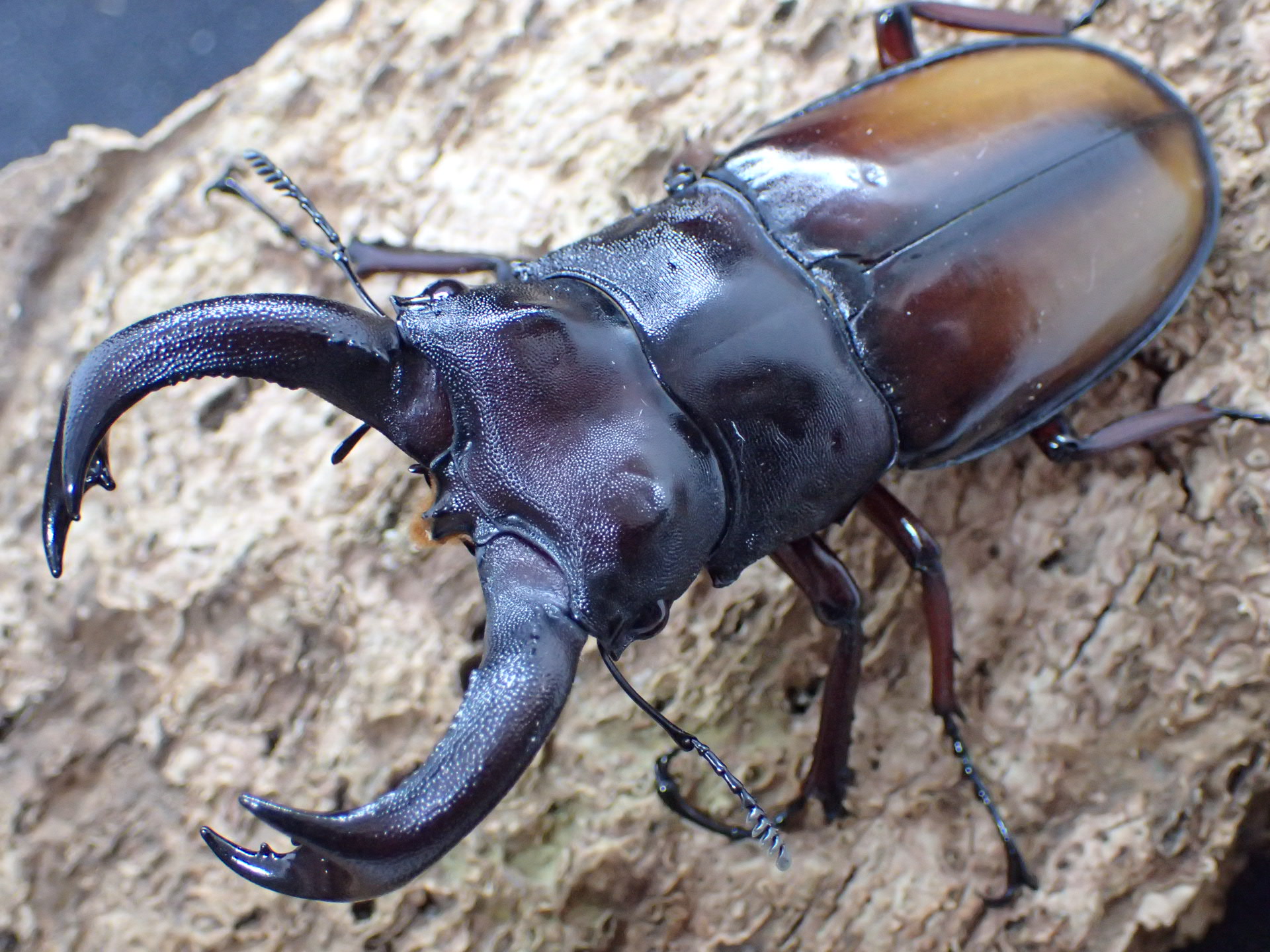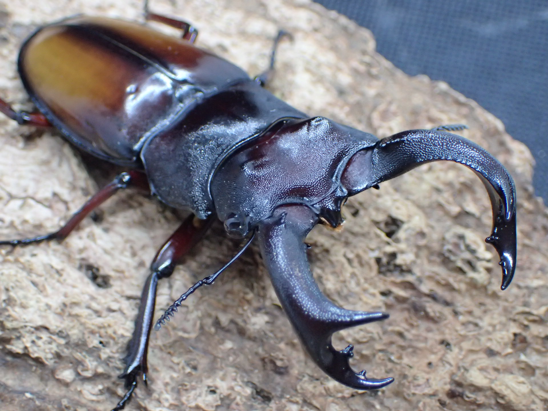 ボルネオ亜種のelongatus(細長いの意)は大アゴと体が最も細長い亜種で、上翅は基部のみが赤褐色~黒褐色で、後半にかけて黄褐色~赤褐色に美しくぼやけ、腿節と脛節赤色味がかった褐色をしています。