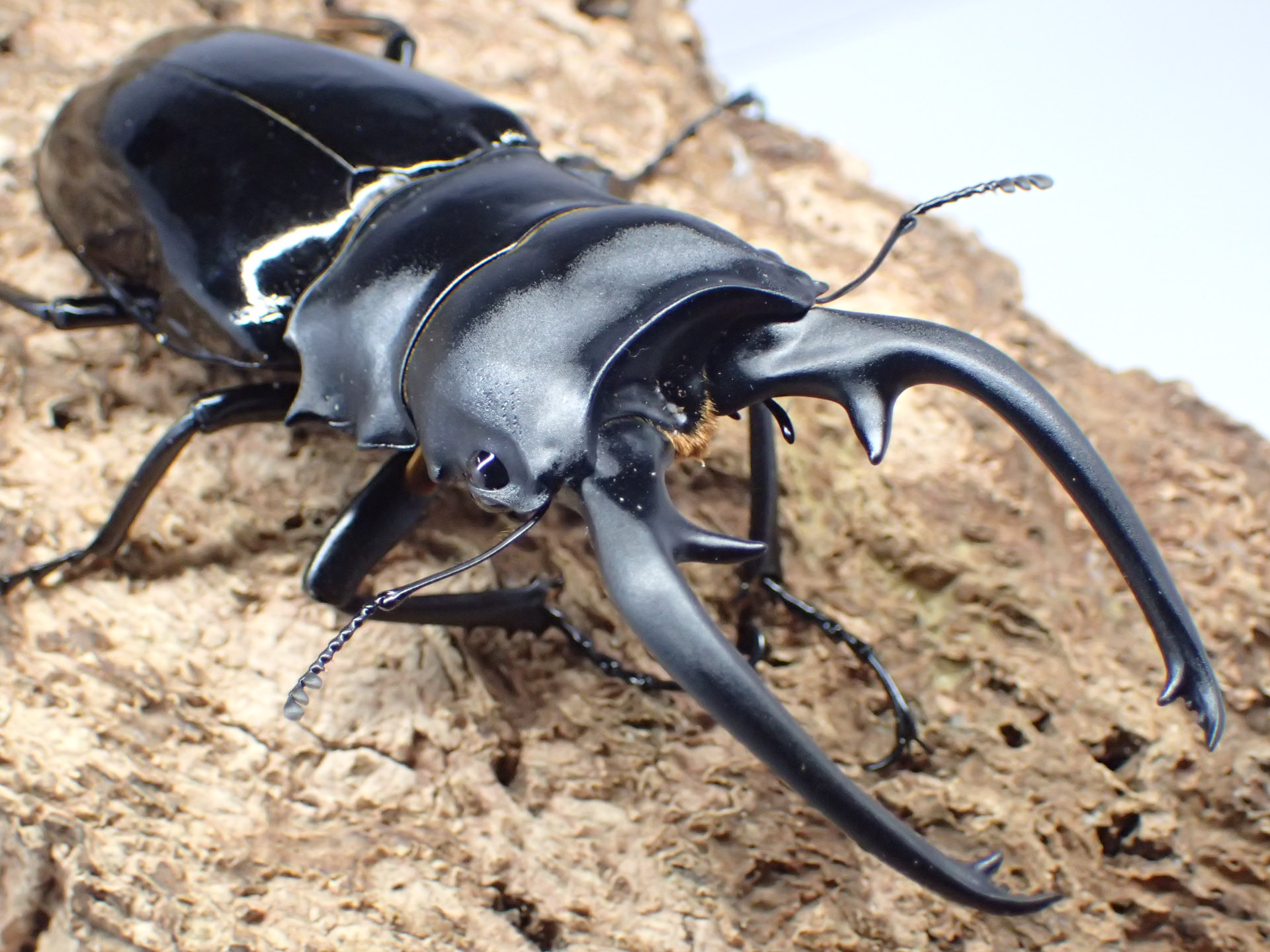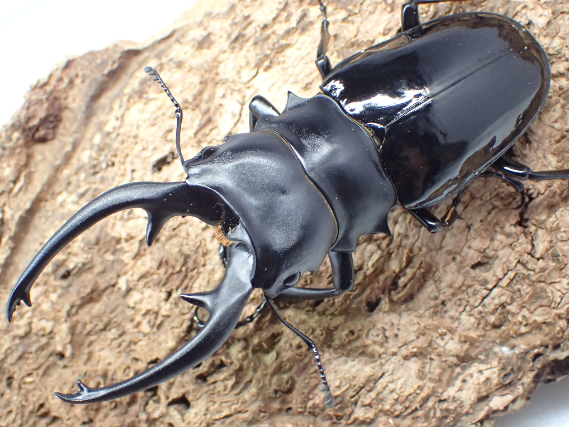 全身黒褐色~黒色で光沢の強いツヤクワガタです。