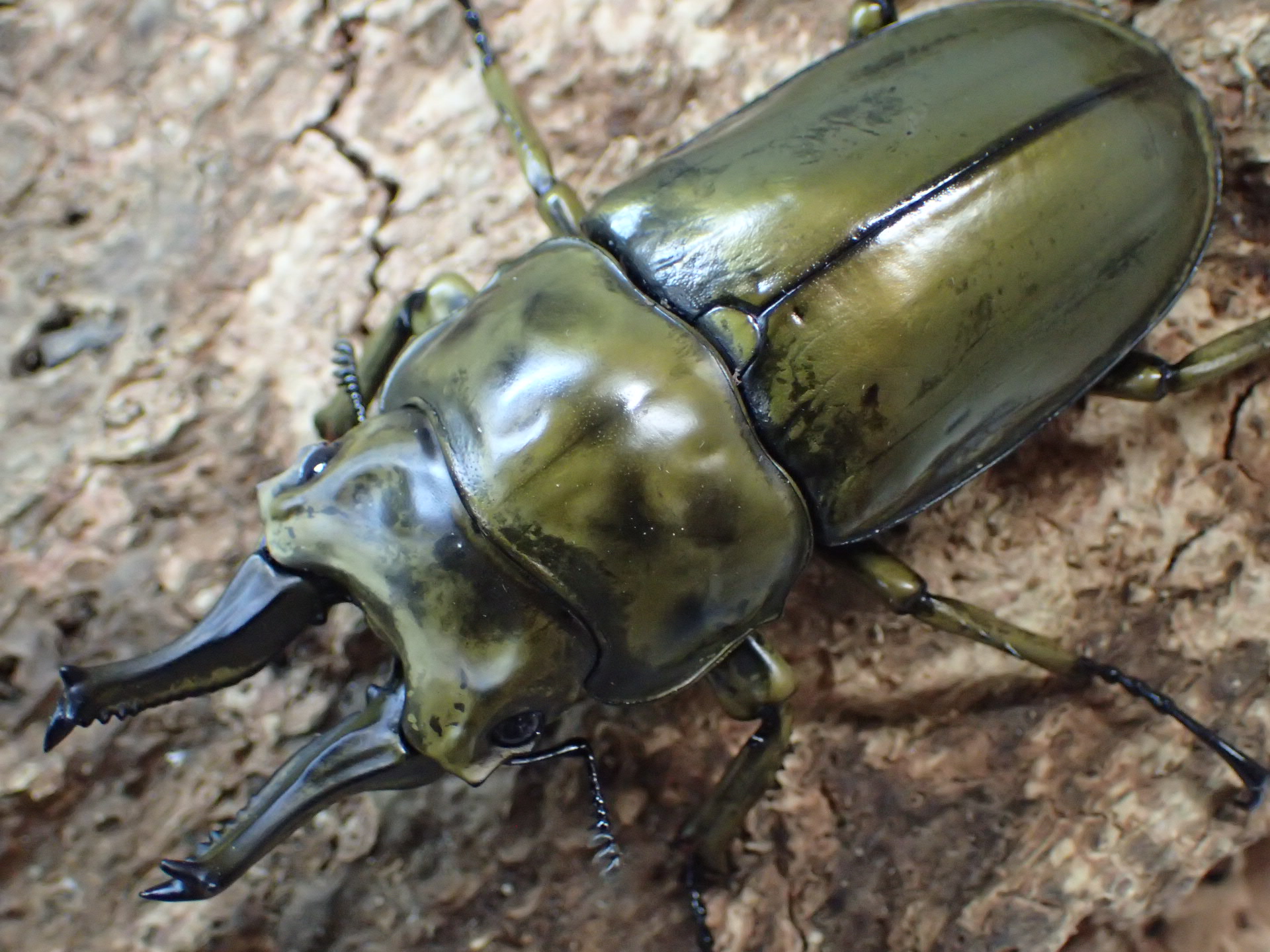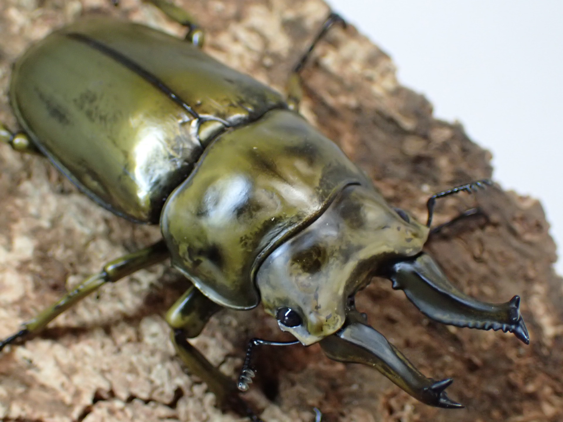 オウゴンオニクワガタの基準種で、名前の通り金色に輝く美しい姿をしています。