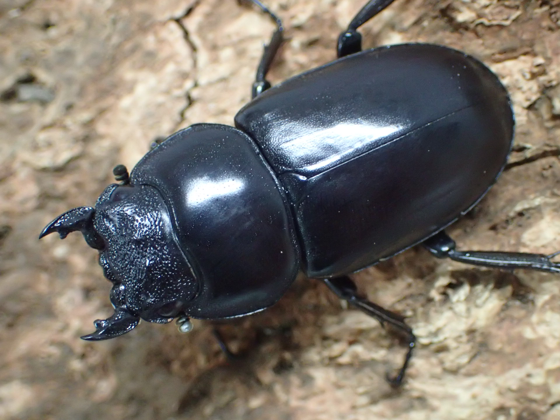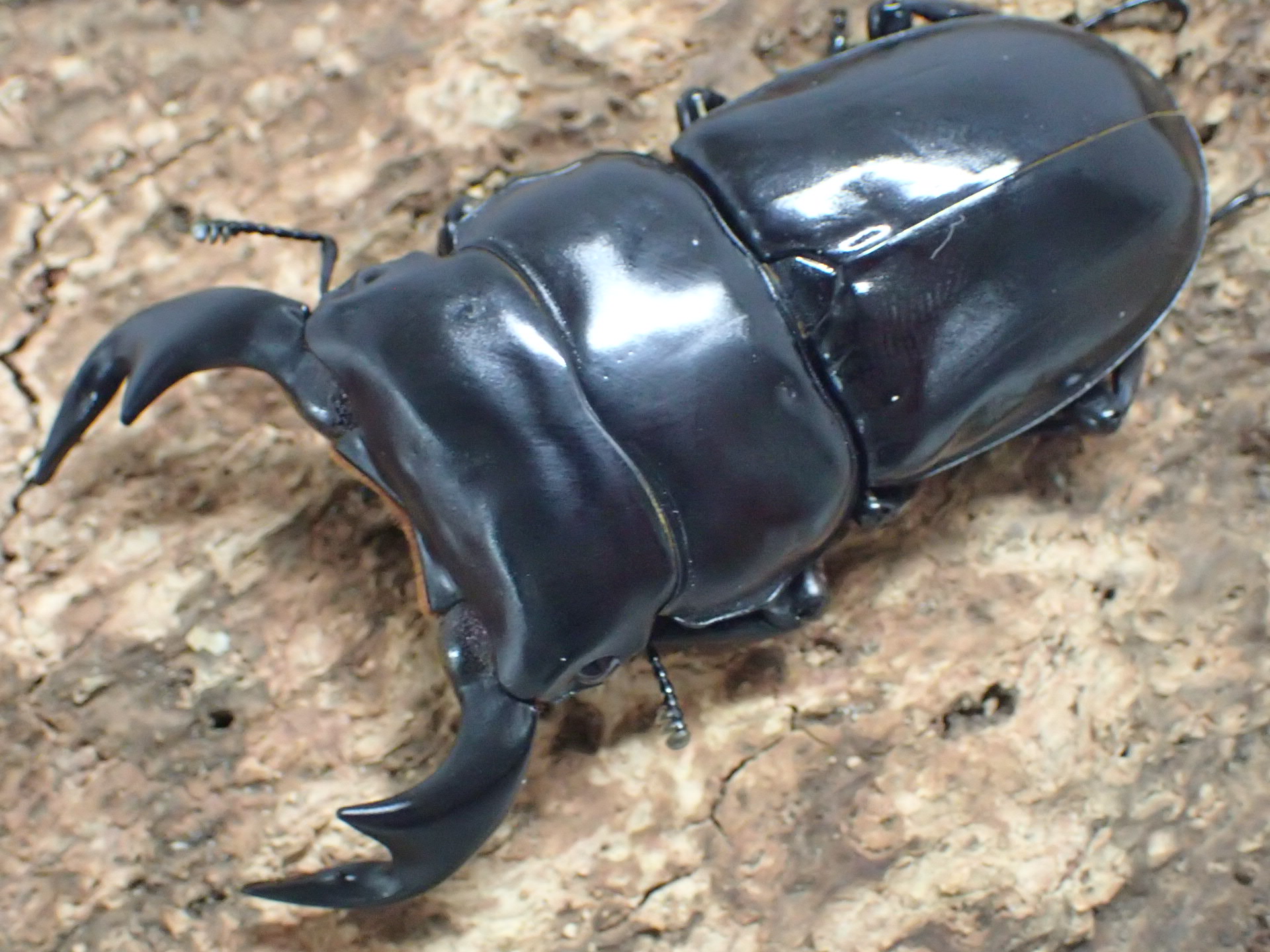 ネパール、インド北部、ブータン、ミャンマー北西部、中国(チベット自治区南西部)などに分布する原名亜種は全亜種で最も大きく、強い光沢があり、大型個体では大アゴは長く前方へ伸びて湾曲が弱く、内歯は斜め前方を向いて突出します。