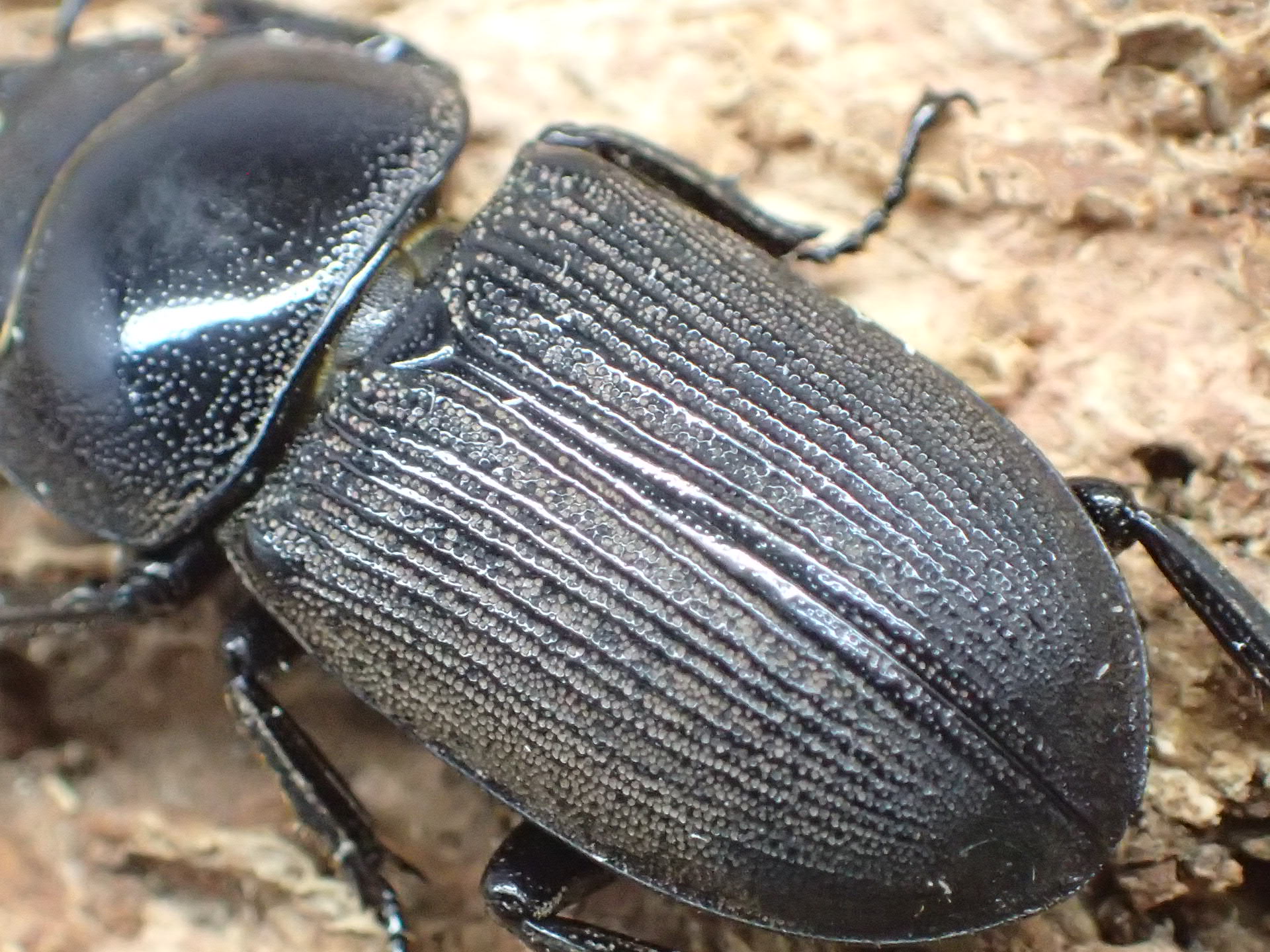 ケルブルスヒラタのメスは翅の第4隆条と第7隆条が離れ、前胸背板中央は非常に小さい点刻があります。